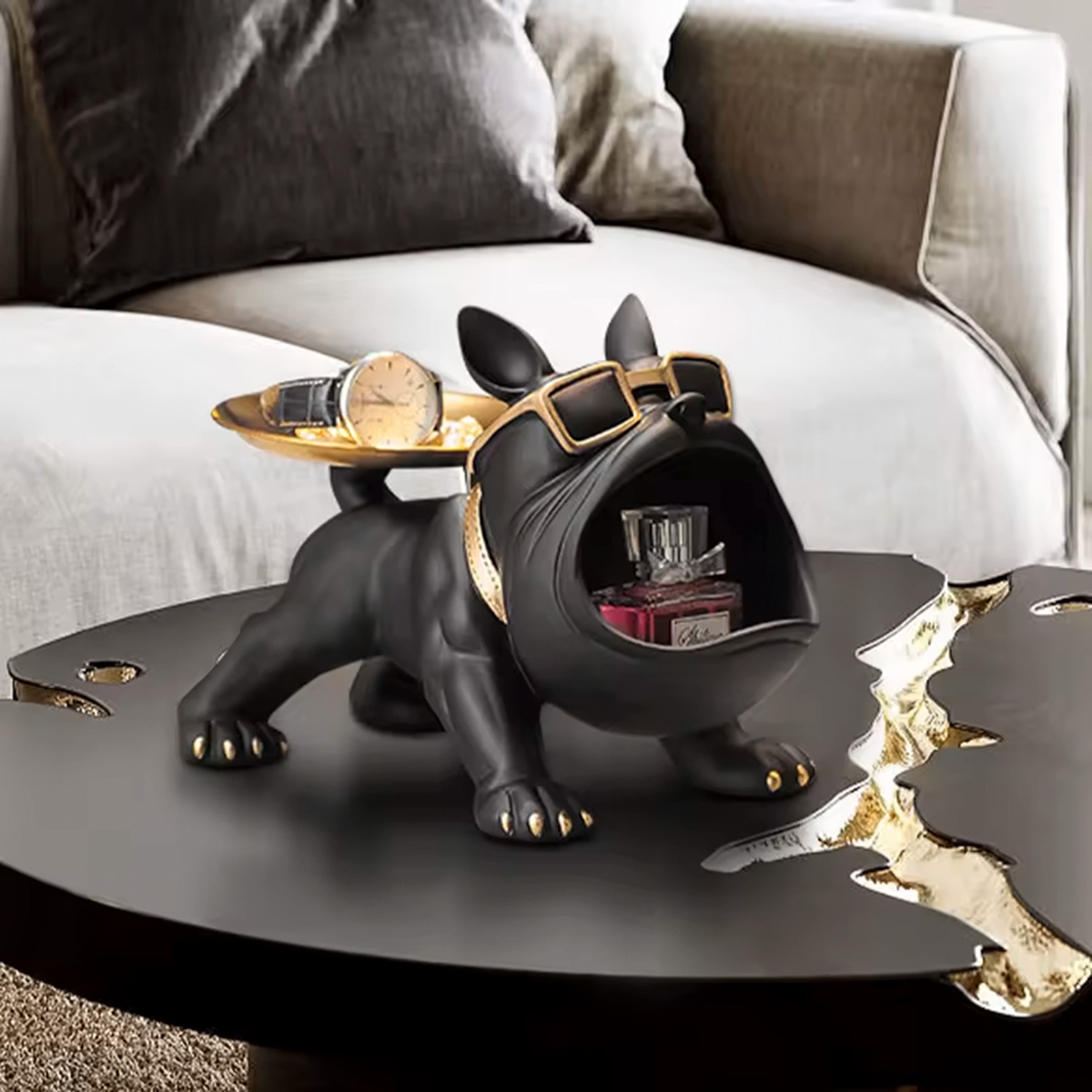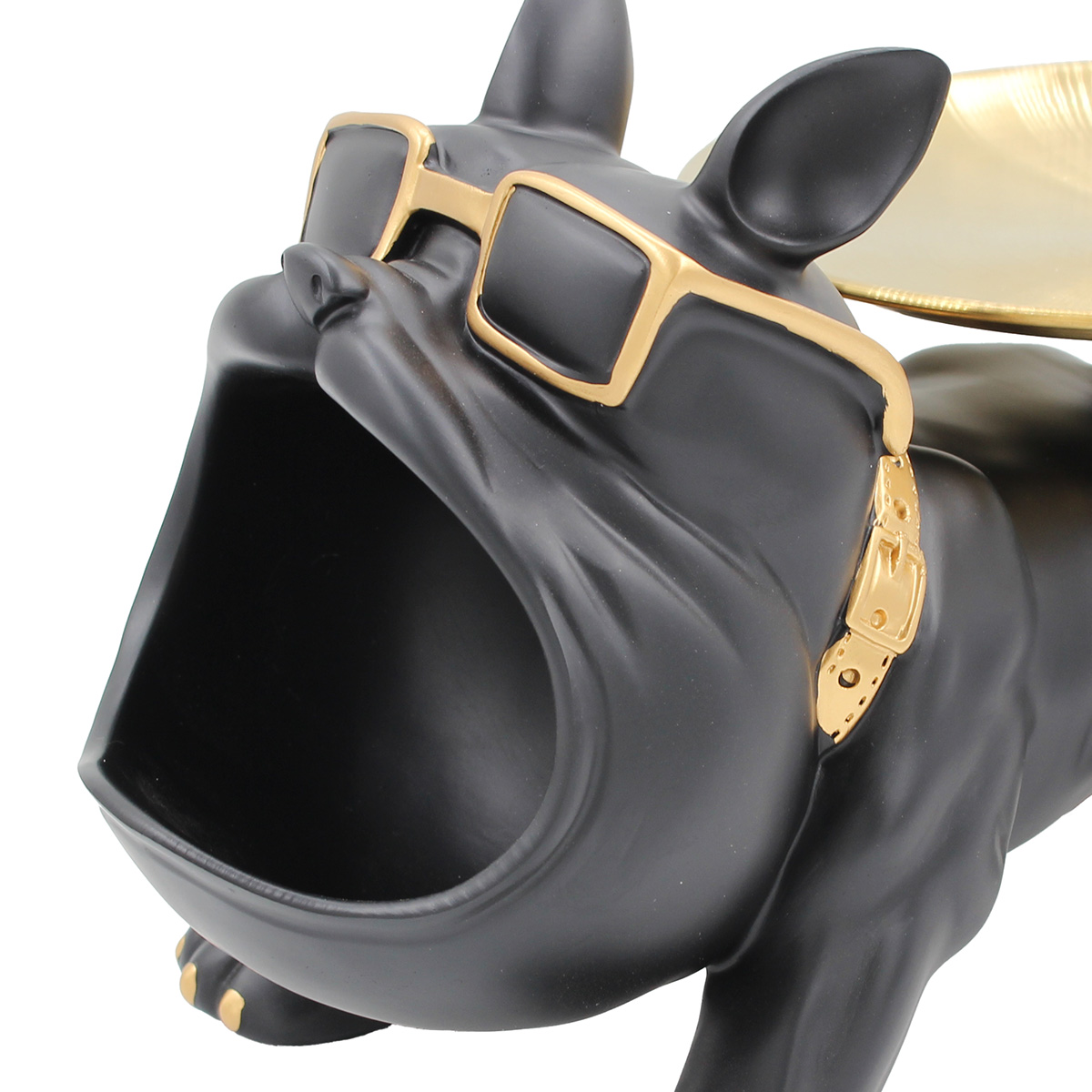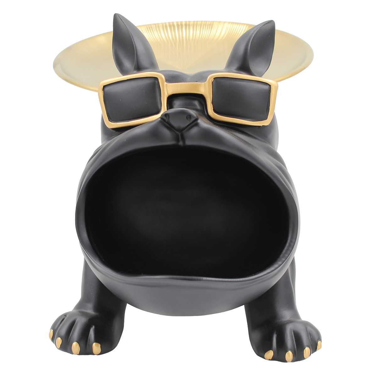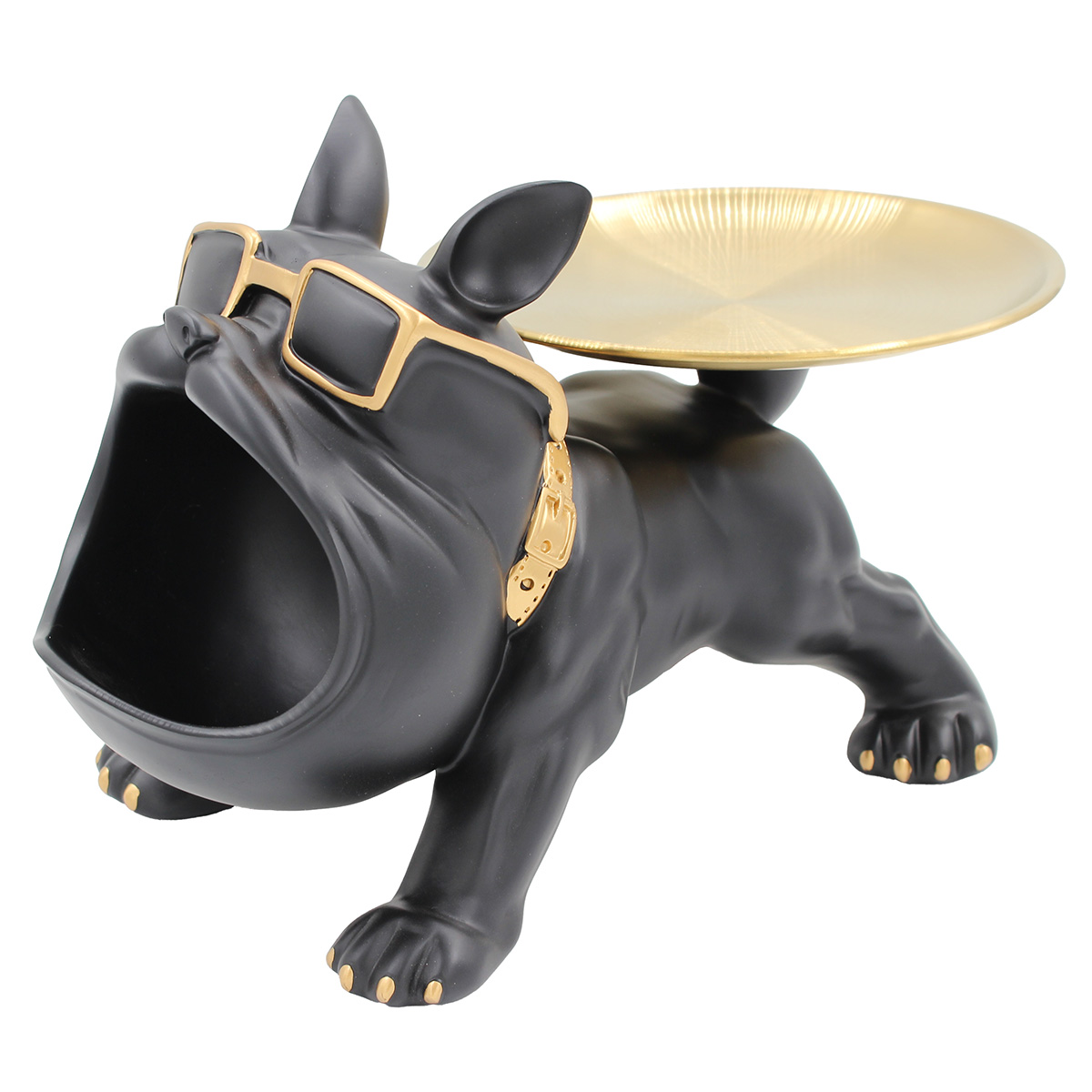 Διακοσμητικό polyresin 30Χ17Χ18 εκ. Σκύλος μαύρο χρυσό με μεταλλικό δίσκο