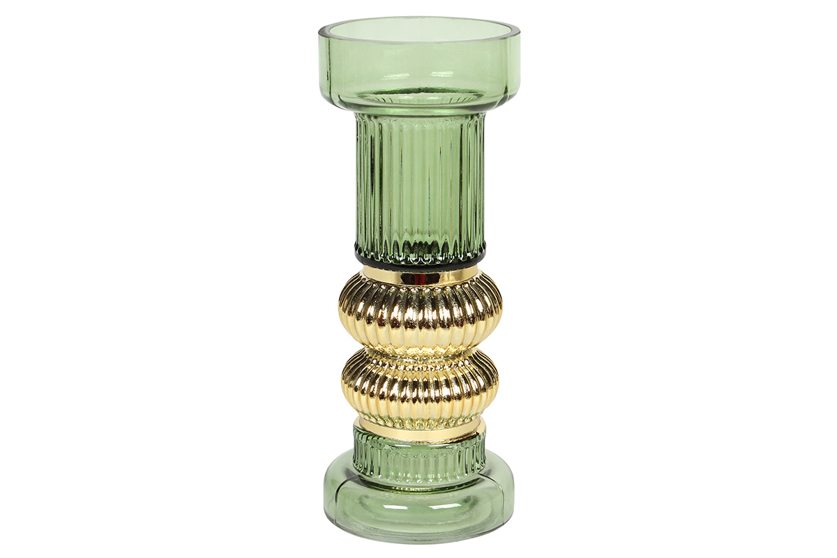 Κηροπήγιο γυάλινο Φ9Χ22 εκ. πράσινο με χρυσές λεπτομέρειες