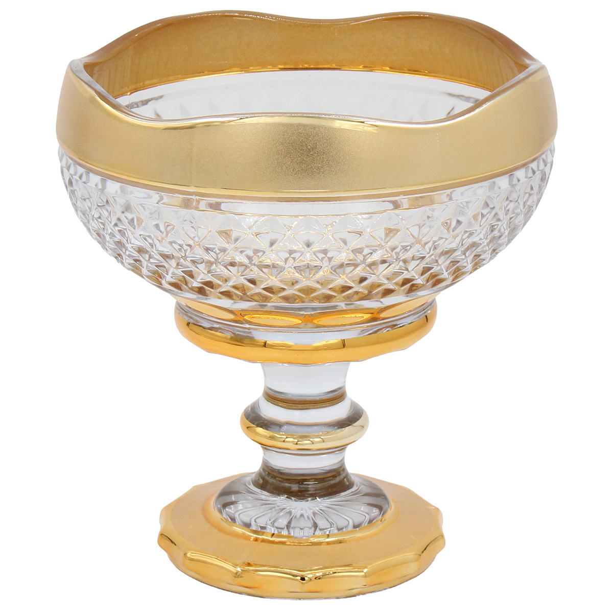 Κουπ γυάλινο κολωνάτο Φ18Χ20 εκ. Χρυσό με ανάγλυφο σχέδιο