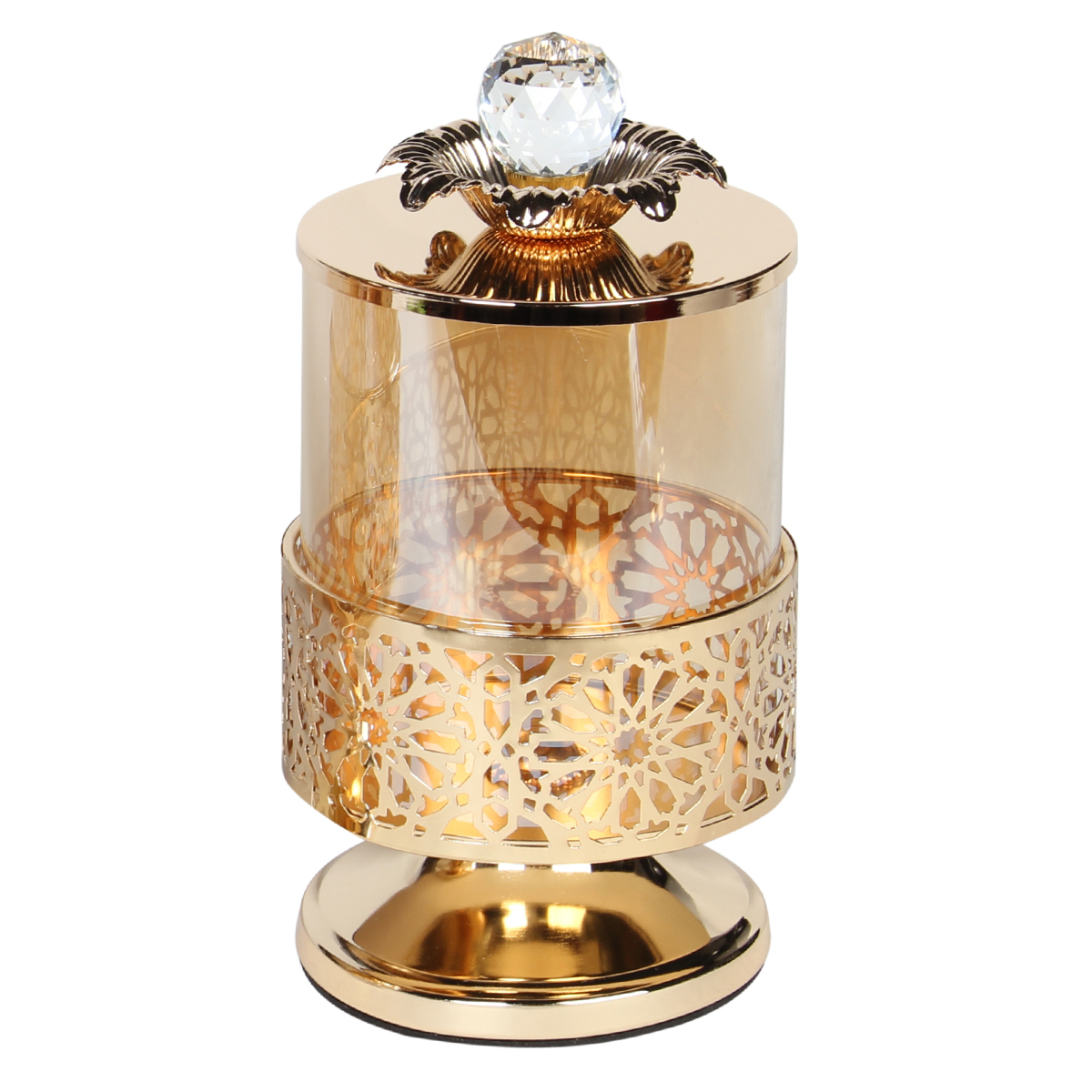 Φοντανιέρα μεταλλική Φ10Χ20 εκ. χρυσή με γυαλί – KESKOR 42302-3