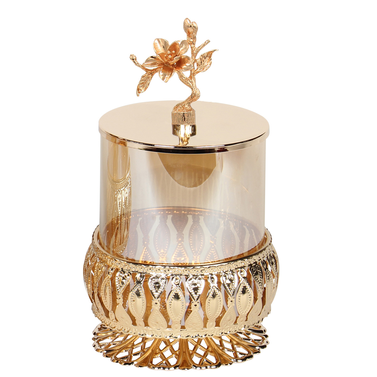 Αυτή η φοντανιέρα είναι κατασκευασμένη από μέταλλο σε χρυσό χρώμα. Συνοδεύεται από γυάλινο κάλυμμα, προσδίδοντας μια αίσθηση πολυτέλειας και κομψότητας. Ιδανική για αποθήκευση και παρουσίαση γλυκών, μπορεί να χρησιμοποιηθεί τόσο για καθημερινή χρήση όσο και για ειδικές περιστάσεις. Μπορεί επίσης να χρησιμοποιηθεί ως διακοσμητικό στοιχείο στο σπίτι, δημιουργώντας μια ζεστή και φιλόξενη ατμόσφαιρα.