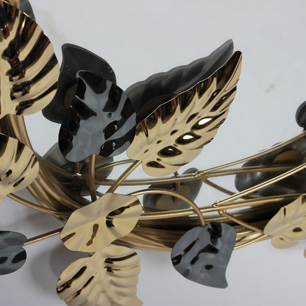Αυτός ο μεταλλικός καθρέπτης τοίχου 80Χ60 εκ. σε χρυσό με φύλλα είναι πρακτικός και διακοσμητικός ταυτόχρονα. Ο συνδυασμός καθρέπτη και μεταλλικών λεπτομερειών δίνει αίσθηση βάθους και πολυτέλειας.