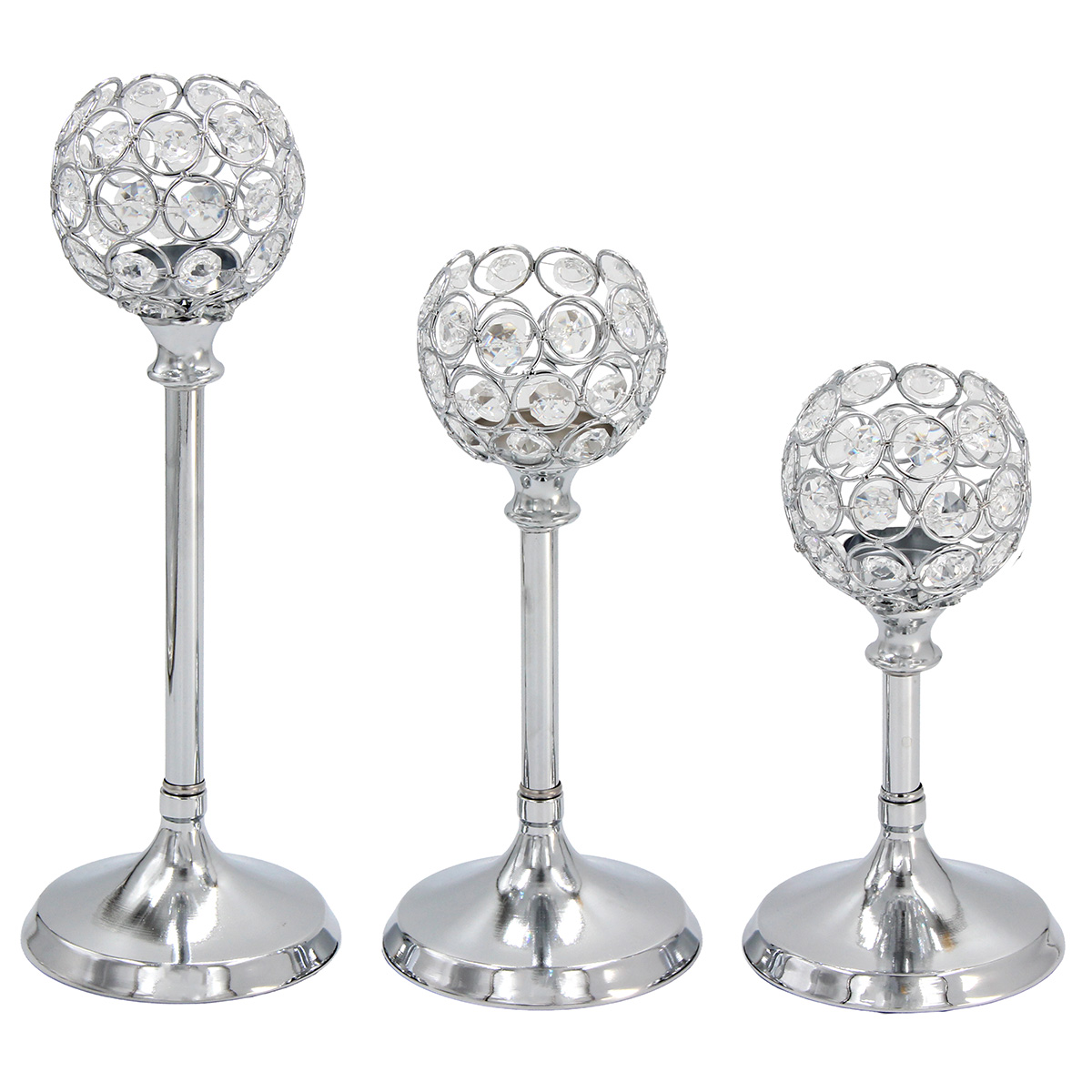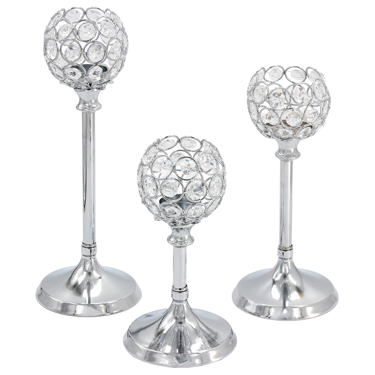 Κηροπήγια τεμ. 3 μεταλλικά Φ10,5Χ27 εκ. – Φ10,5Χ22 εκ. – Φ10,5Χ16 εκ. Ασημί με κρύσταλλα – KESKOR 52009