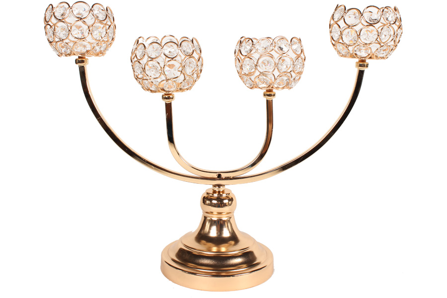 Κηροπήγιο μεταλλικό με 4 θέσεις χρυσό με κρύσταλλα – KESKOR 781203