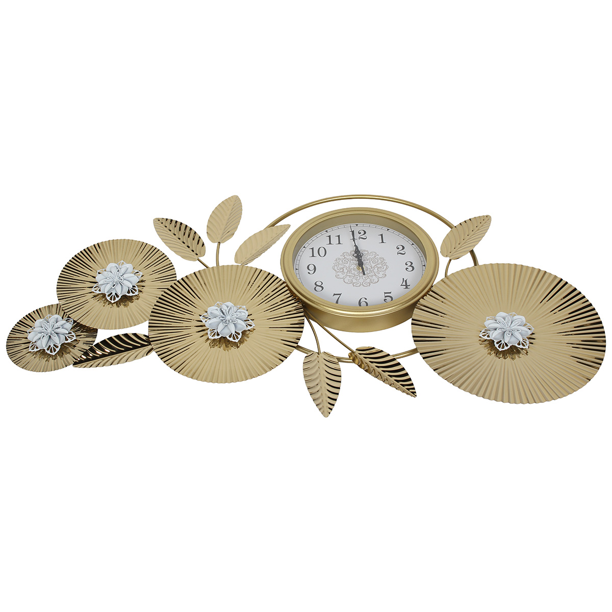 Ρολόι τοίχου μεταλλικό 94Χ5Χ52 εκ. Χρυσό με φύλλα και λουλούδια – KESKOR 94304