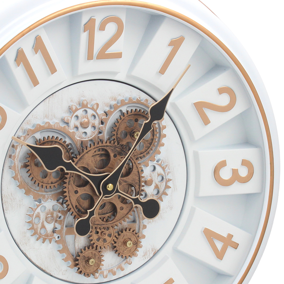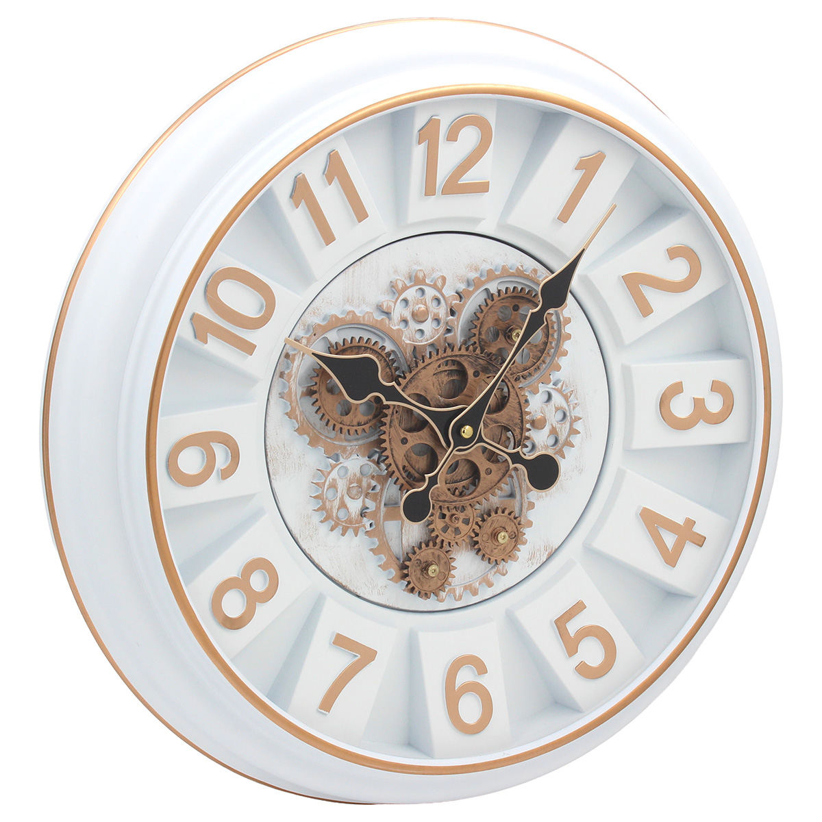 Ρολόι τοίχου πλαστικό Φ45Χ7 εκ. Λευκό Χρυσό με μηχανισμό και κίνηση γραναζιών – KESKOR 87520