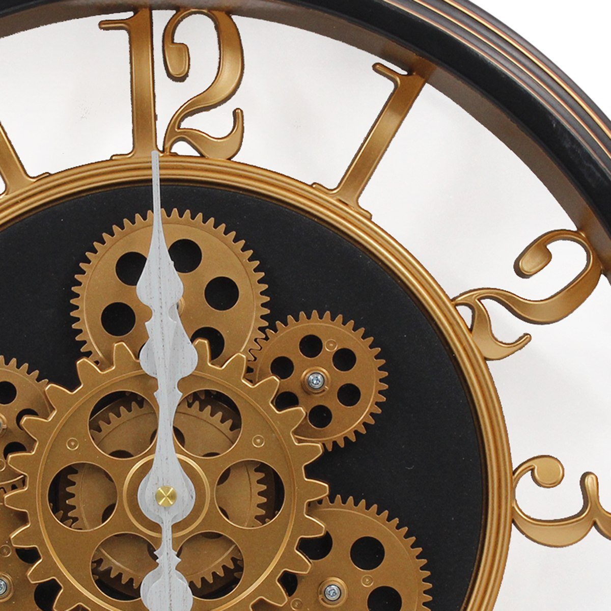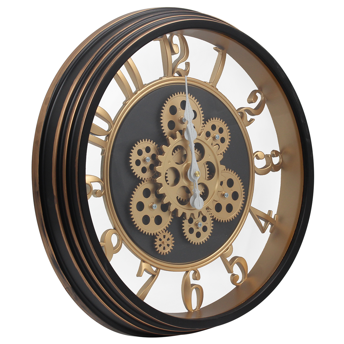Ρολόι τοίχου πλαστικό Φ45Χ7 εκ. Μαύρο Χρυσό με μηχανισμό και κίνηση γραναζιών