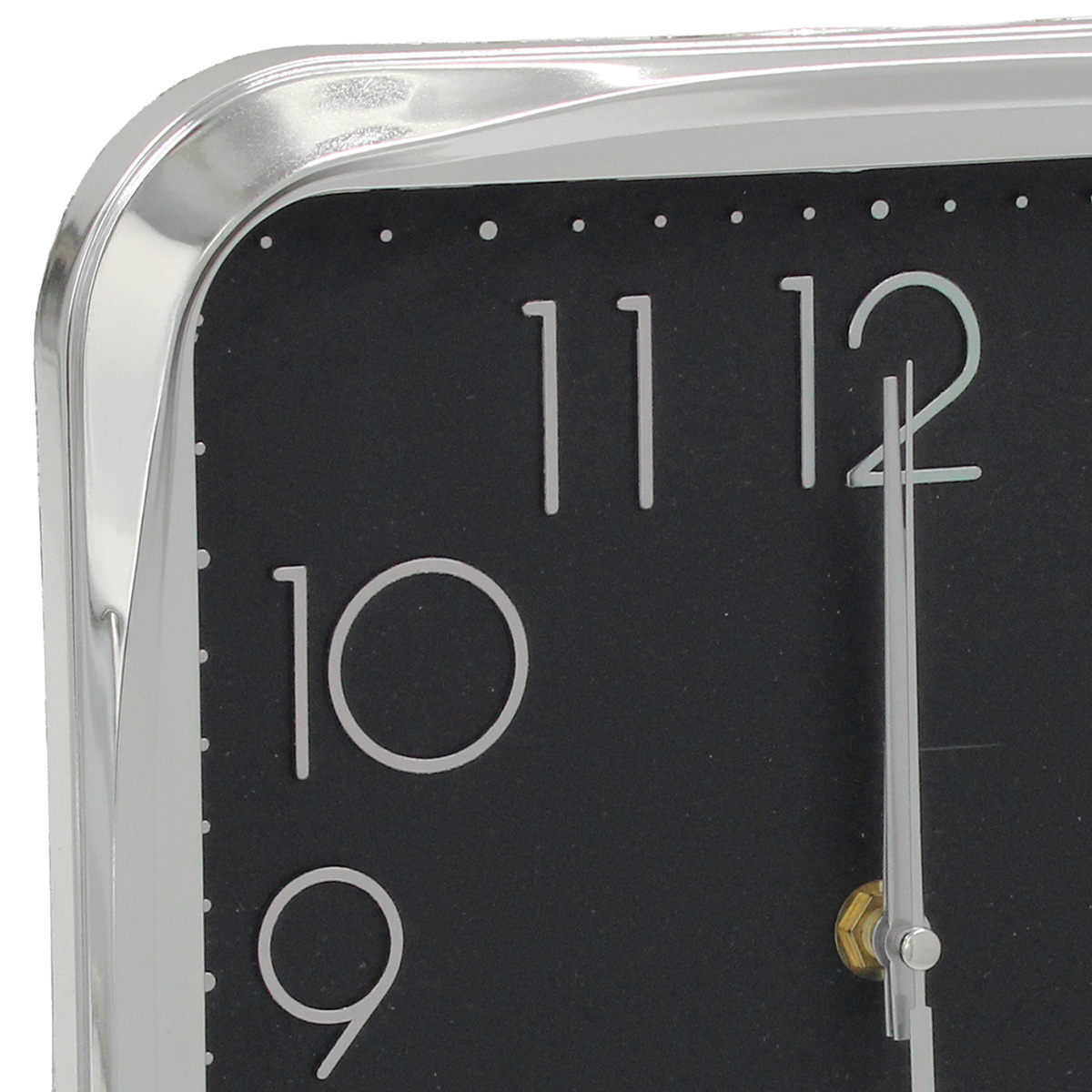 Αυτό το ασημί ρολόι τοίχου σε τετράγωνο σχήμα είναι μοντέρνο και πρακτικό. Ιδανικό για γραφεία και μινιμαλιστικούς χώρους.
