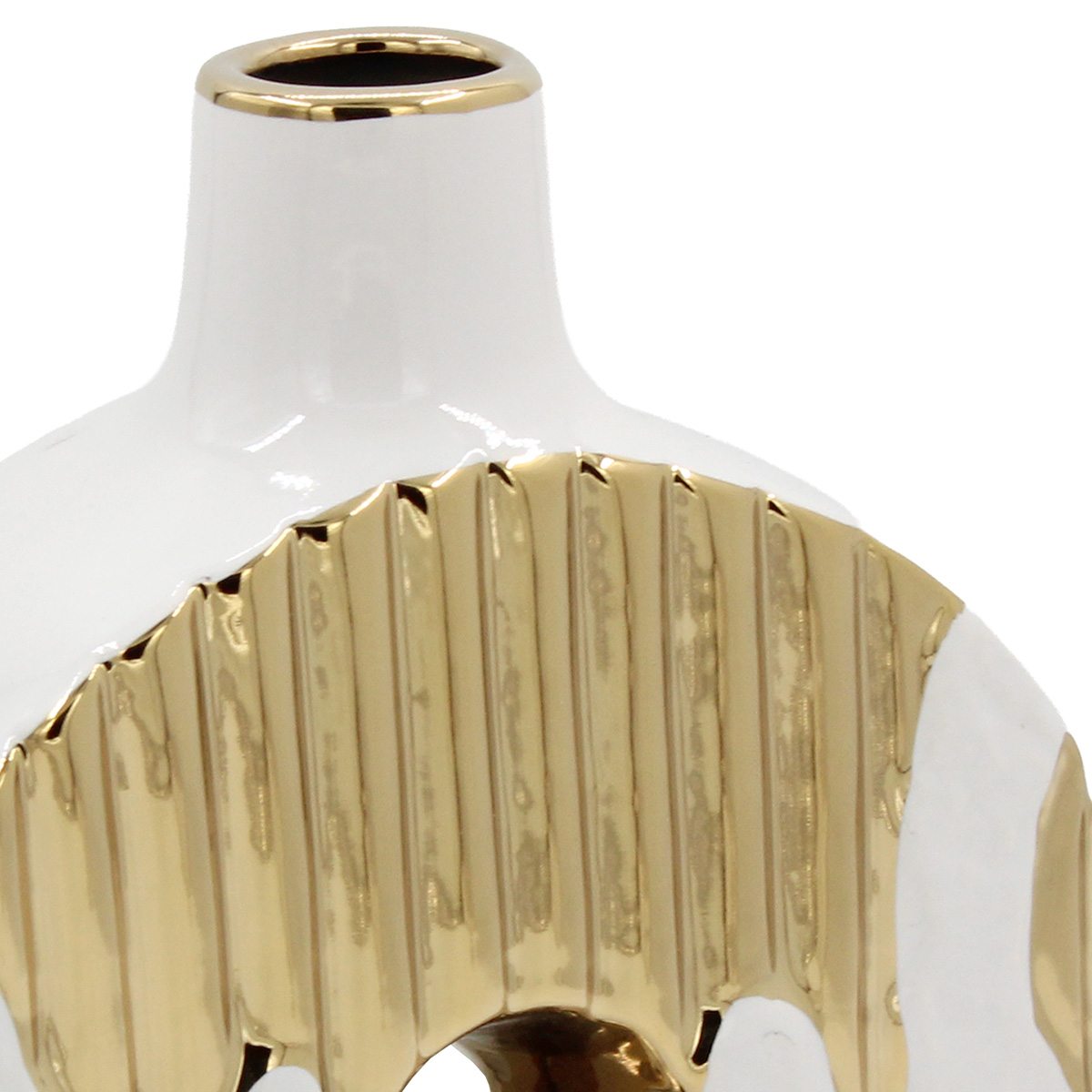 Αυτό το ανθοδοχείο – διακοσμητικό κεραμικό 10Χ8Χ21,5 εκ. σε λευκό και χρυσό ταιριάζει απόλυτα σε μοντέρνους και minimal χώρους.