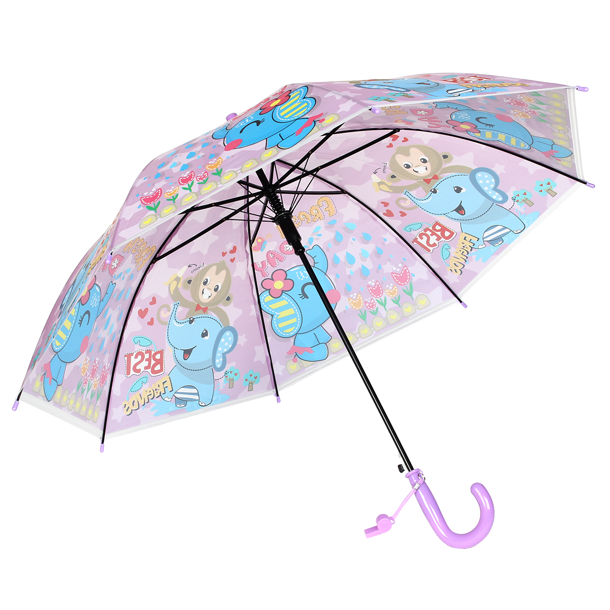 Ομπρέλα βροχής παιδική αυτόματη με μπαστούνι, σφυρίχτρα και 8 ακτίνες Φ83Χ65 εκ. Μωβ
