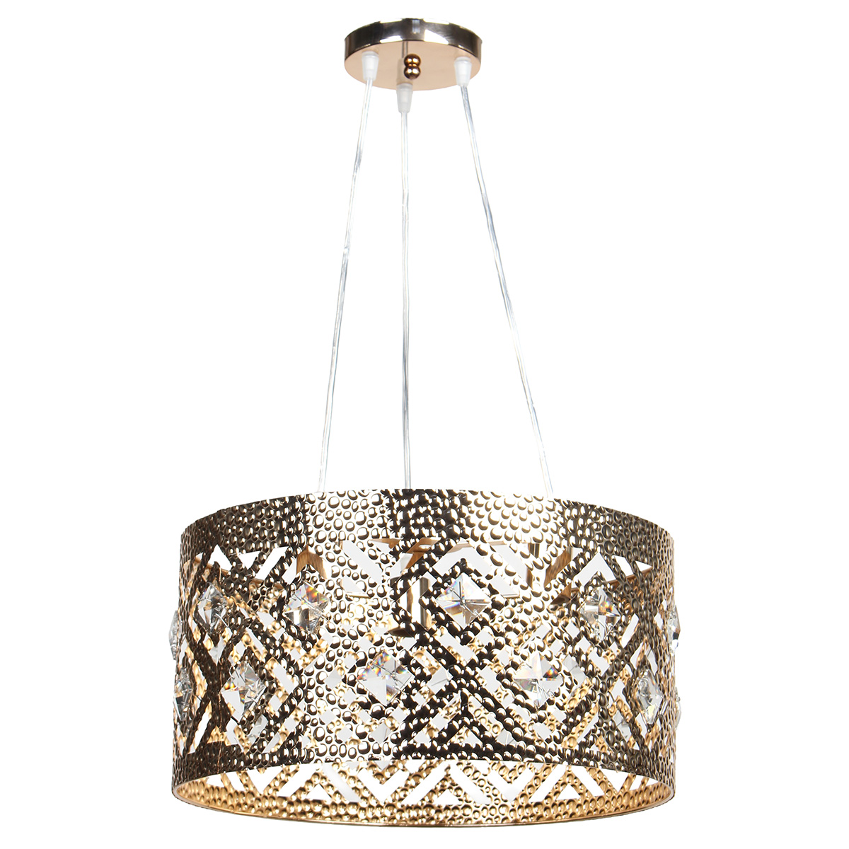 Φωτιστικό μεταλλικό κρεμαστό 3 Χ Ε27 Φ40Χ20 εκ. Χρυσό με κρύσταλλα