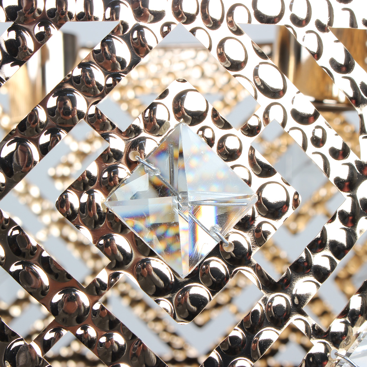 Αυτό το εντυπωσιακό μεταλλικό κρεμαστό φωτιστικό διαθέτει τρεις υποδοχές Ε27 και διακοσμητικά κρύσταλλα. Προσφέρει πολυτελή αίσθηση και ζεστό φωτισμό στον χώρο. Ιδανικό για σαλόνια ή τραπεζαρίες με κομψή αισθητική.