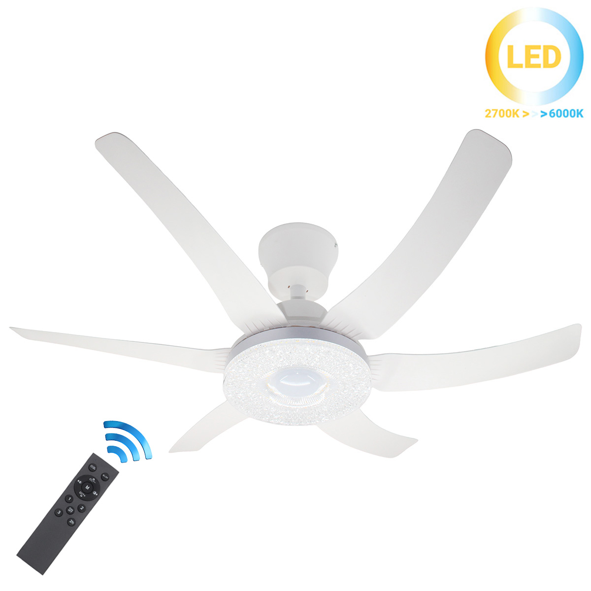 Ανεμιστήρας οροφής με 6 πτερύγια Φ96Χ30 εκ. 60 Watt με φωτισμό LED και controller Λευκό – KESKOR 653372