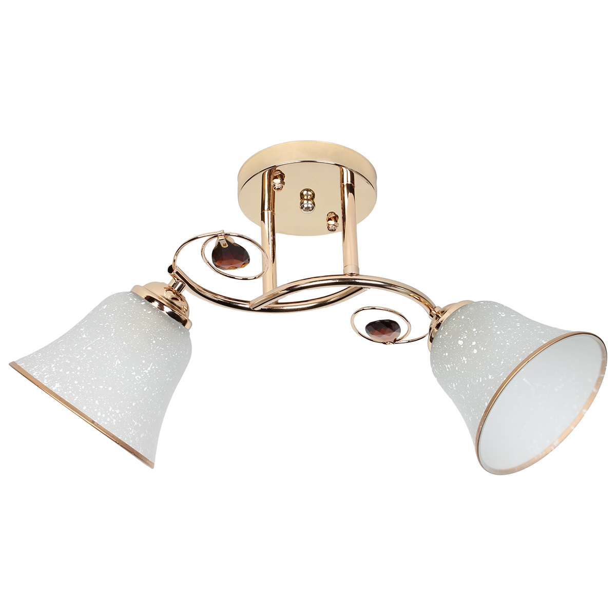 Φωτιστικό οροφής 2 Χ Ε27 46Χ18Χ26 εκ. χρυσό με γυαλιά και ακρυλικά διακοσμητικά σε μελί χρώμα