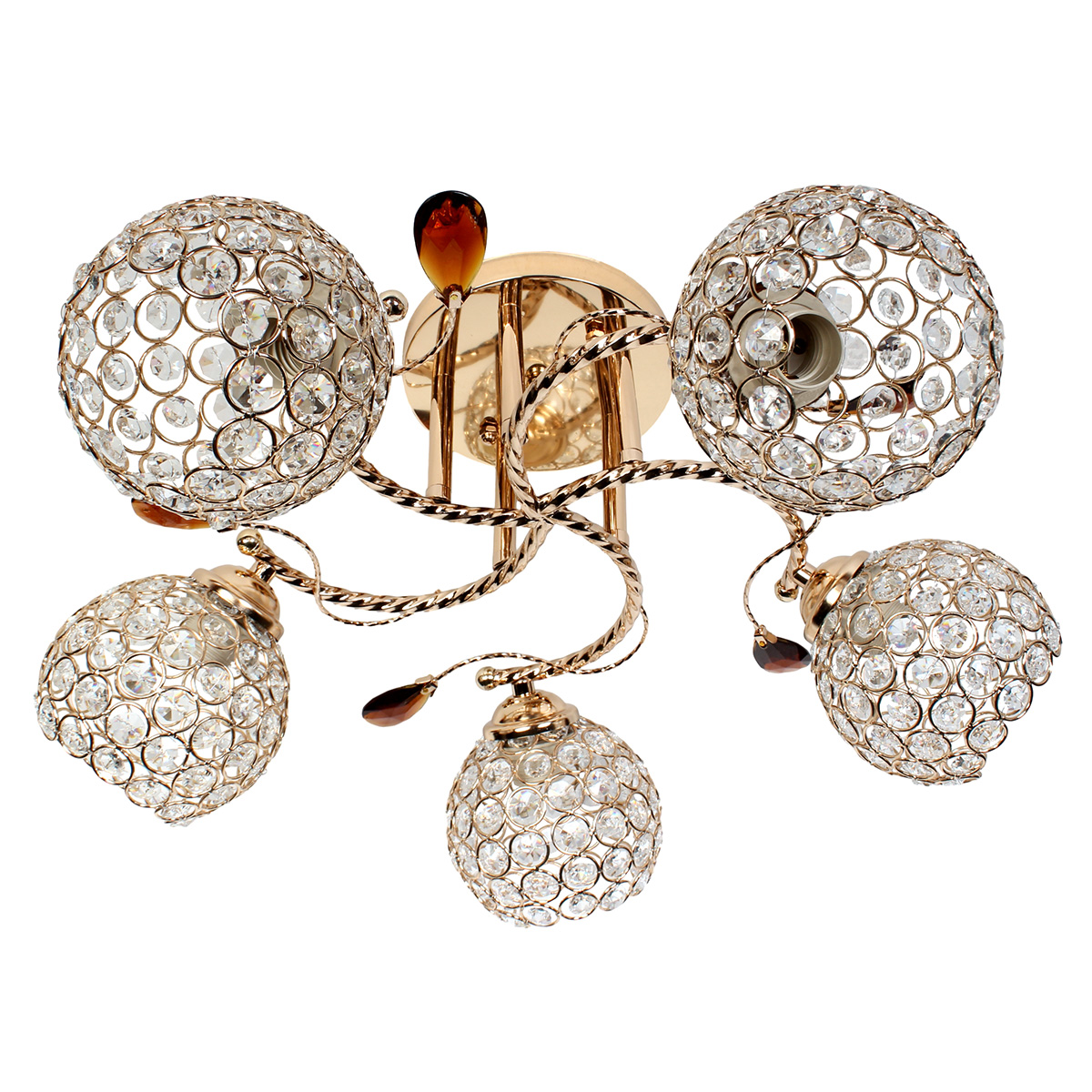 Φωτιστικό οροφής 5 Χ Ε27 Φ52Χ24 εκ. χρυσό με κρύσταλλα – GLOBOBOX 9841A/5 FGD