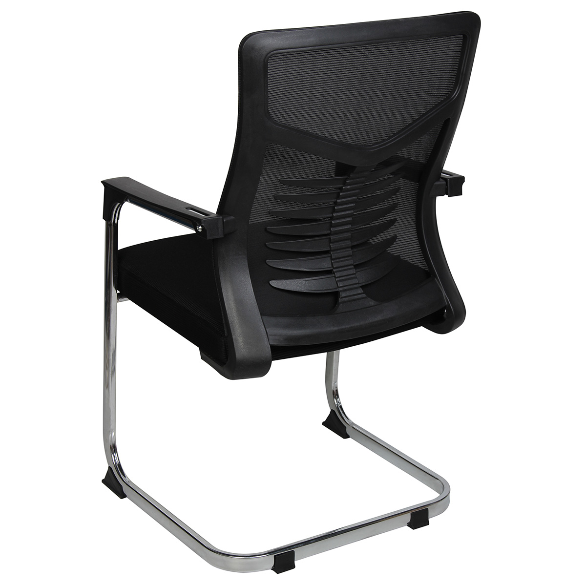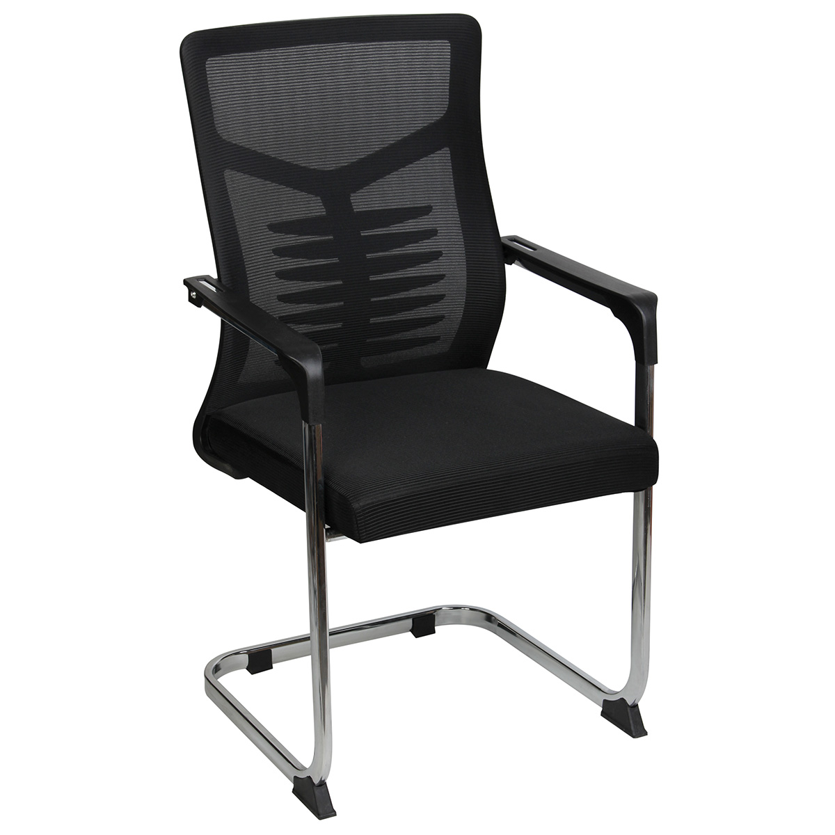 Καρέκλα γραφείου επισκέπτη με μεταλλική βάση χρωμίου. Διαθέτει μπράτσα, υφασμάτινη επένδυση στο κάθισμα και δίχτυ στην πλάτη σε χρώμα μαύρο.