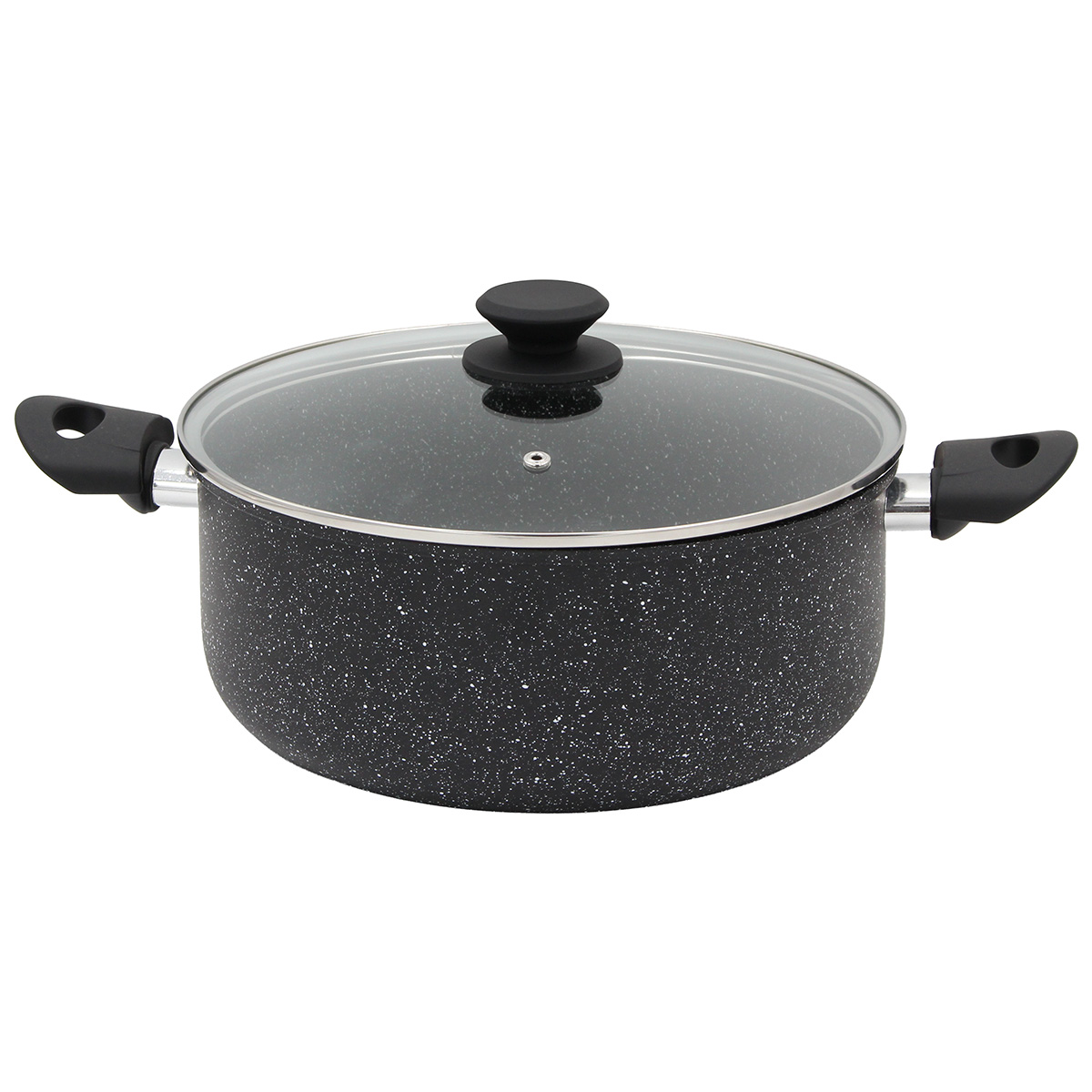 Κατσαρόλα αλουμινίου αντικολλητική με κεραμική επίστρωση πέτρας και πυρίμαχο διάφανο καπάκι