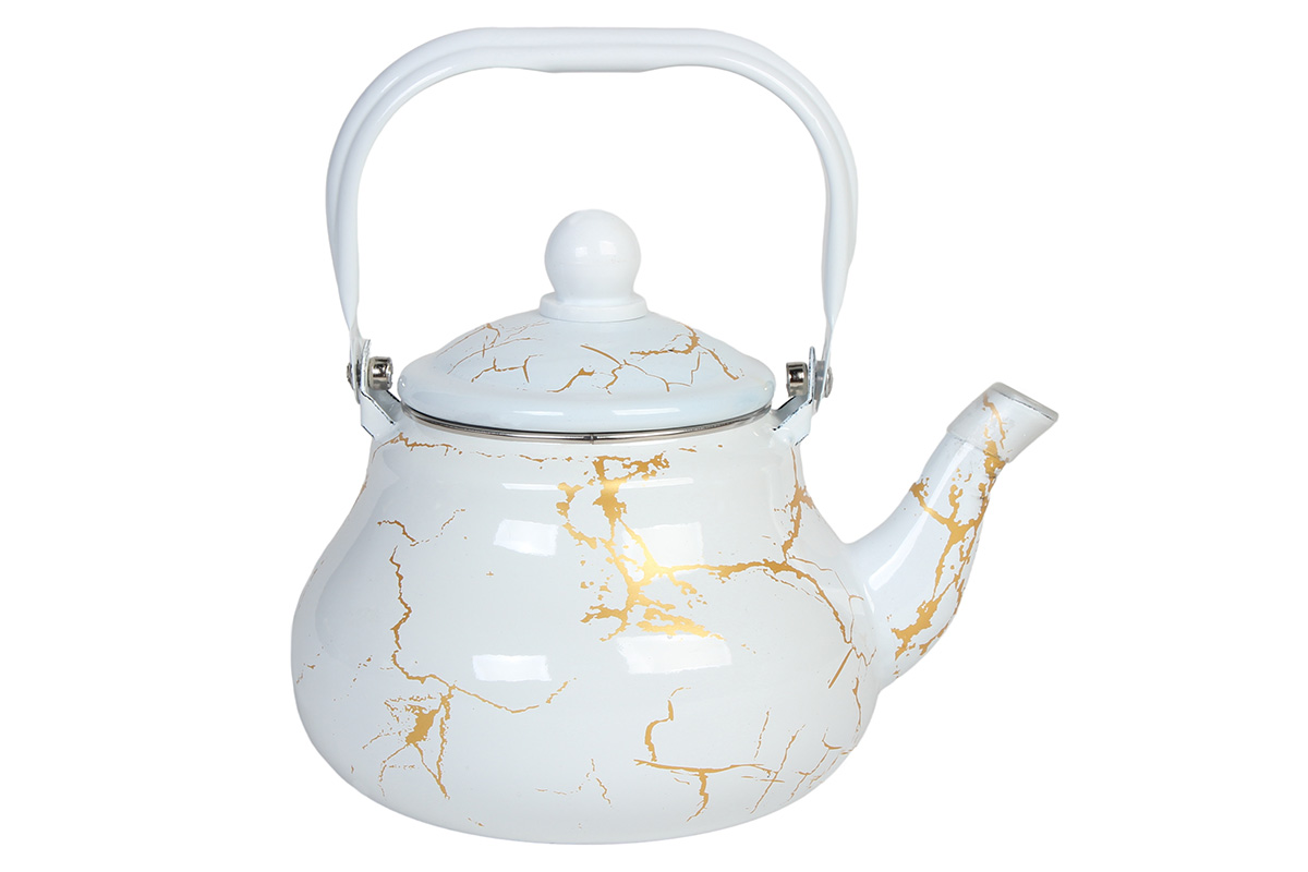 Τσαγιερό εμαγιέ 1500 ml Φ16Χ15,5 εκ. Λευκό Χρυσό.