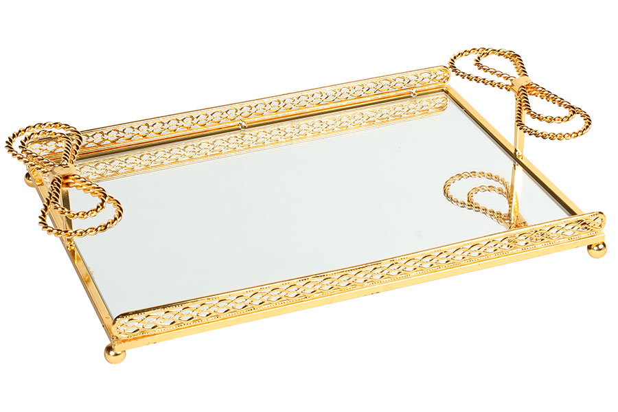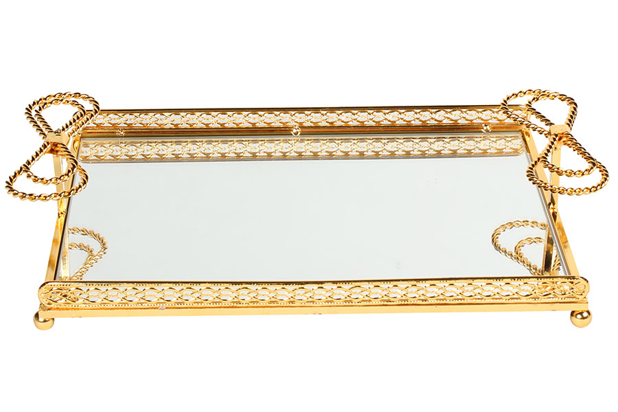 Δίσκος μεταλλικός με καθρέφτη 40Χ25Χ8 εκ. χρυσός