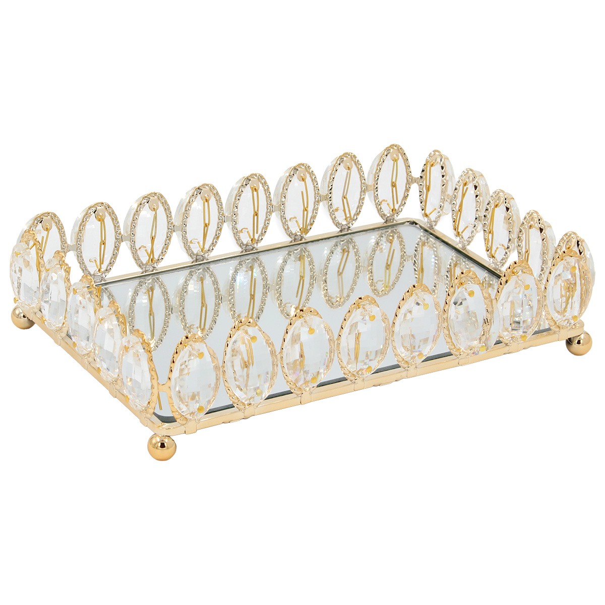 Διακοσμητικό – Δίσκος μεταλλικός 23Χ15Χ5,5 εκ. Χρυσός με καθρέπτη και κρύσταλλα – KESKOR 43149-3