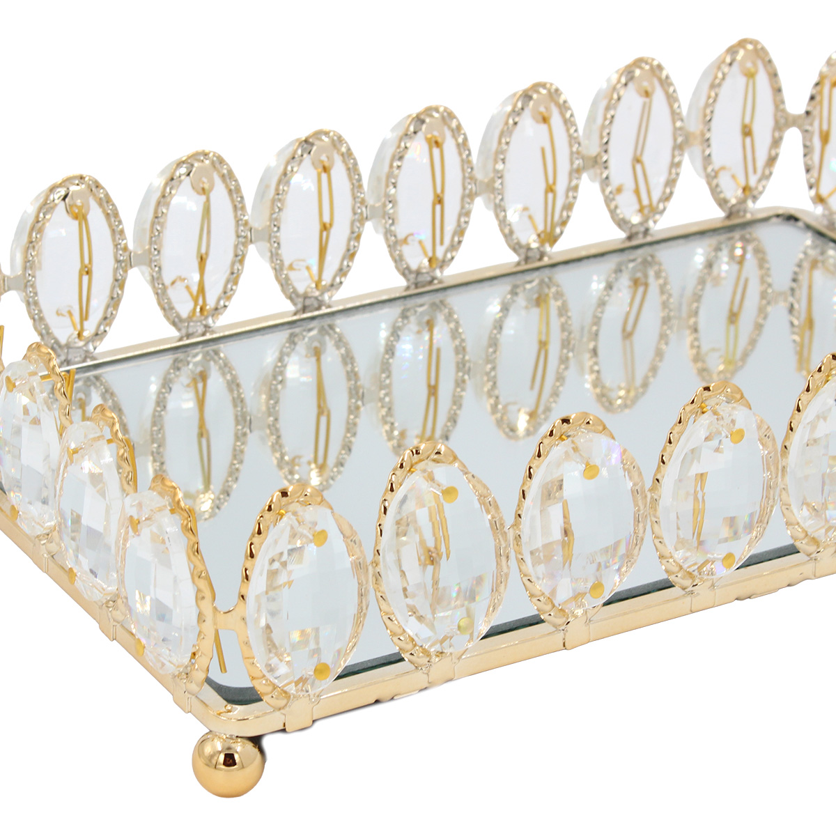 Διακοσμητικό – Δίσκος μεταλλικός 23Χ15Χ5,5 εκ. Χρυσός με καθρέπτη και κρύσταλλα