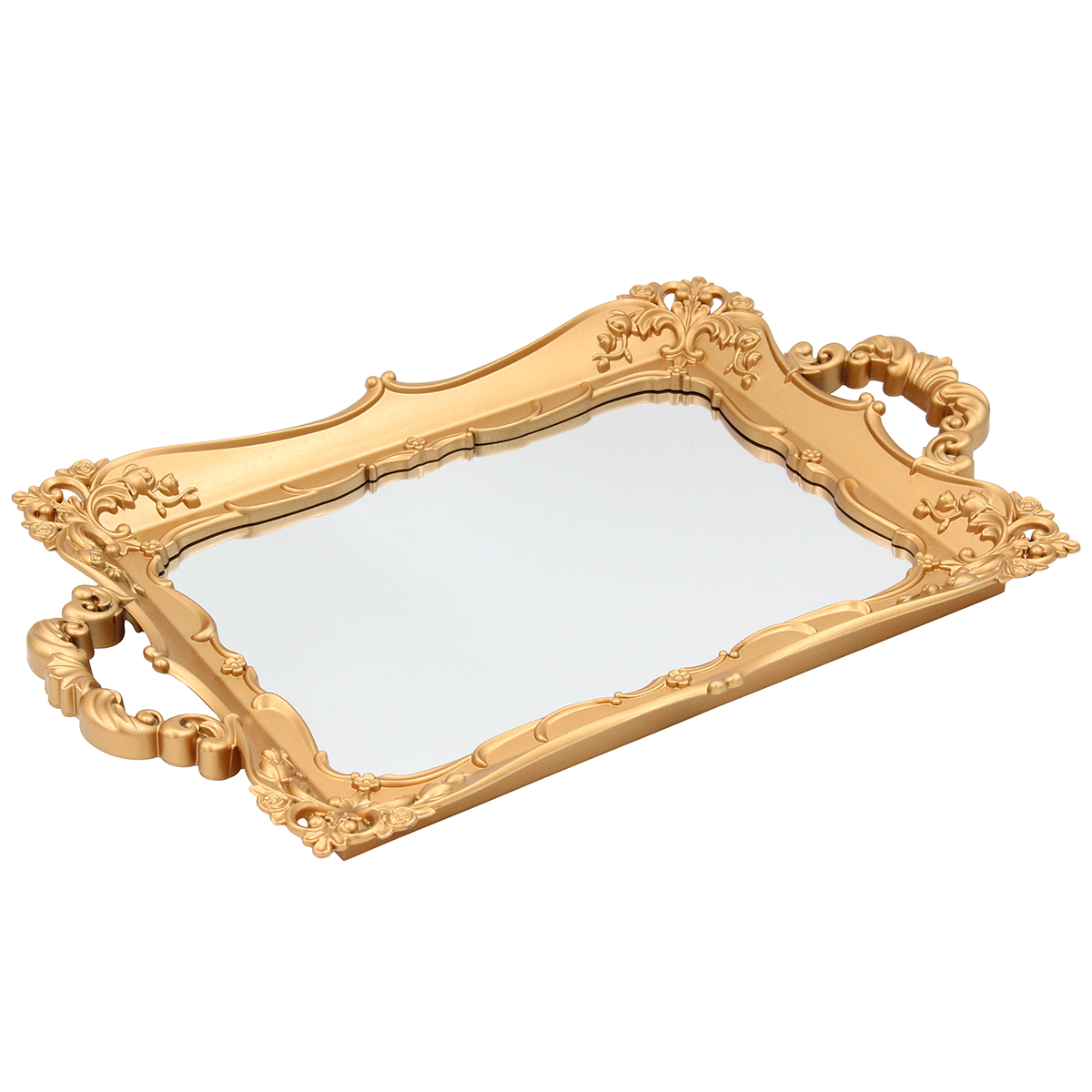 Διακοσμητικό – δίσκος πλαστικός 39Χ25Χ3 εκ. Χρυσός με καθρέπτη