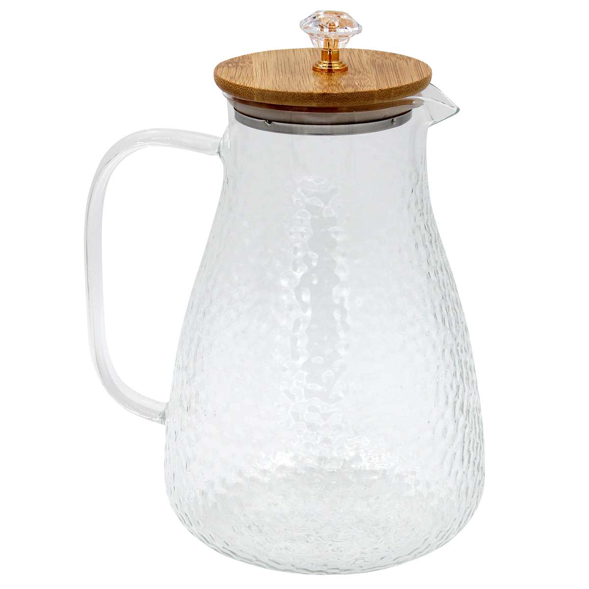 Κανάτα γυάλινη 1600 ml 16Χ12Χ22 εκ. με ανάγλυφο σχέδιο και ξύλινο καπάκι – KESKOR 61389