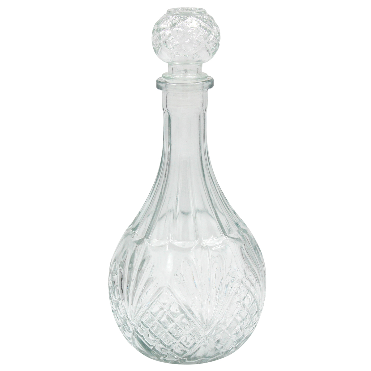 Μποτίλια – καράφα γυάλινη 950 ml Φ13Χ27 εκ. με πώμα και ανάγλυφο σχέδιο
