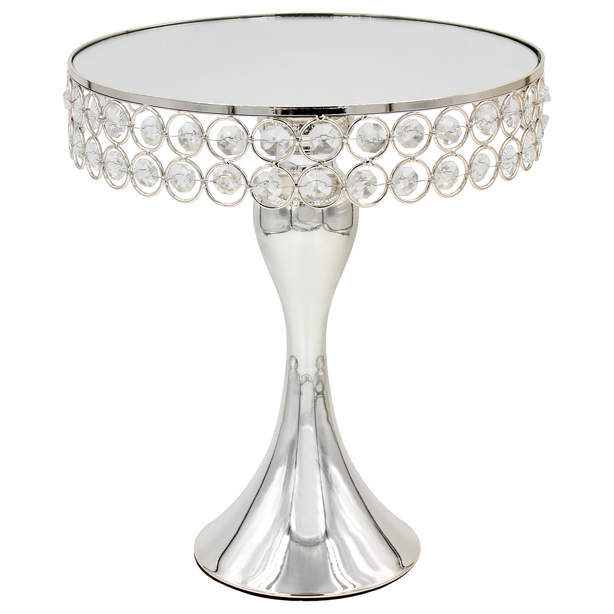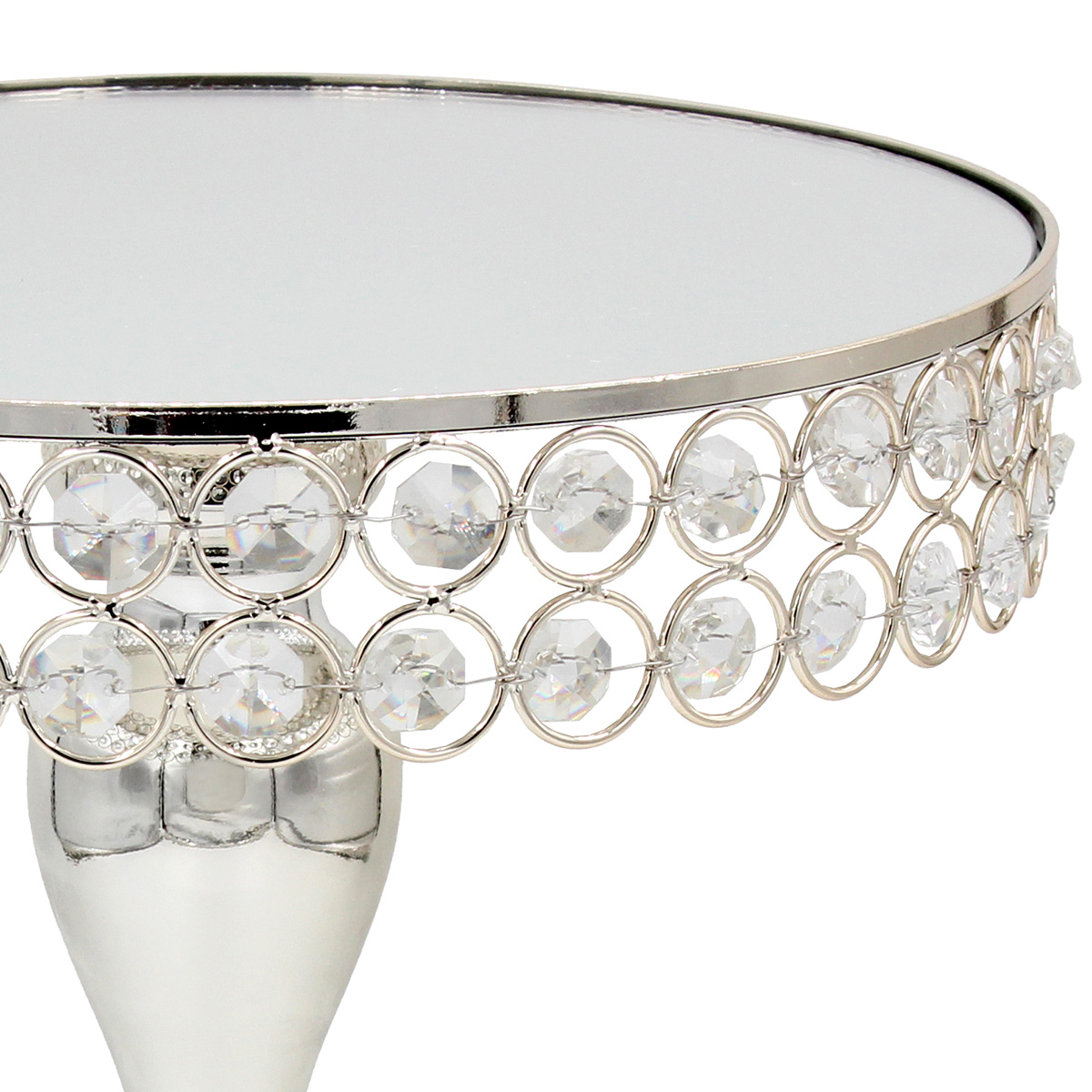 Τουρτιέρα – πιατέλα κολωνάτη μεταλλική Φ25Χ29 εκ. ασημί με κρύσταλλα και καθρέπτη – KESKOR 43056-1