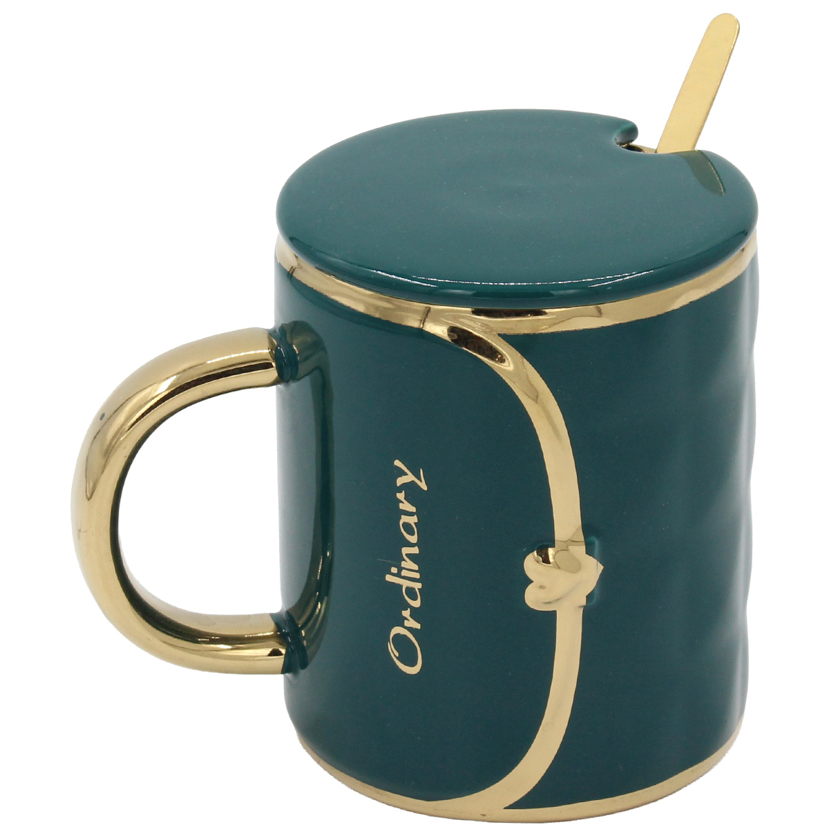 Αυτή η κούπα κεραμική διακοσμητική 370 ml 12Χ8,5Χ10,5 εκ. σε σχέδιο τσάντα πράσινο χρυσό με κουταλάκι είναι ιδιαίτερη και κομψή. Ταιριάζει σε κάθε στιγμή.