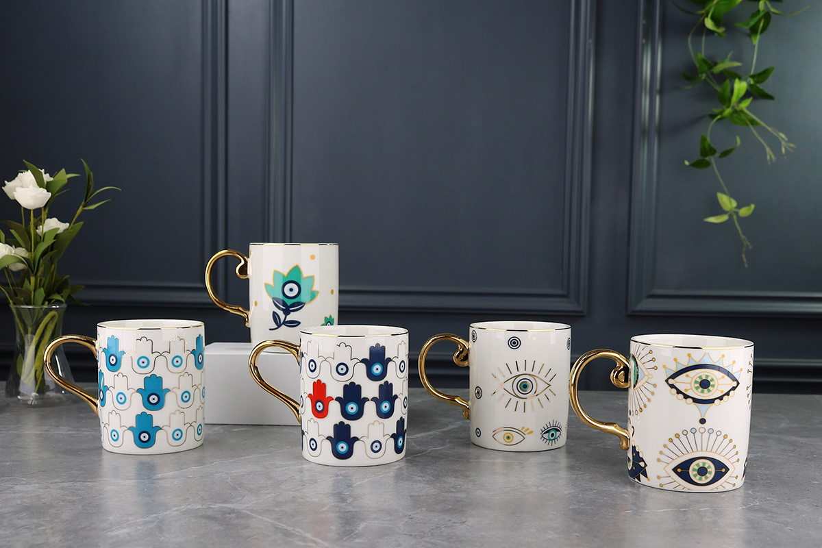 Κούπα κεραμική 350 ml Φ8Χ9,3 εκ. με χρυσό χεράκι – KESKOR 80622-1