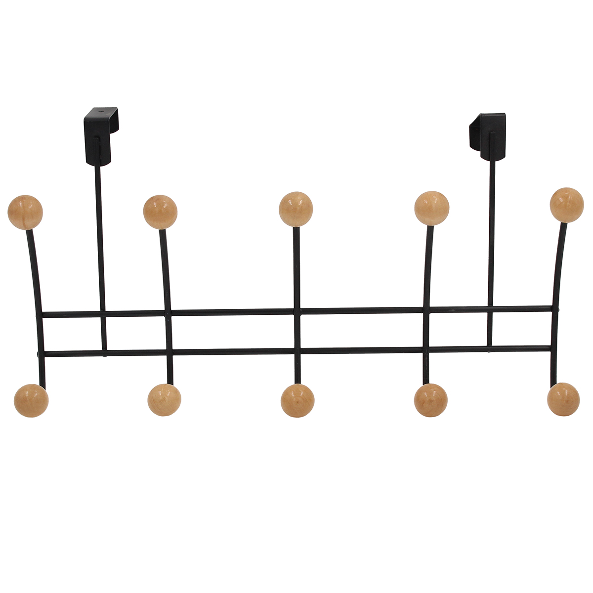 Κρεμάστρα πόρτας μεταλλική 10 θέσεων 40Χ21Χ11,5 εκ. Μαύρη με ξύλινες άκρες